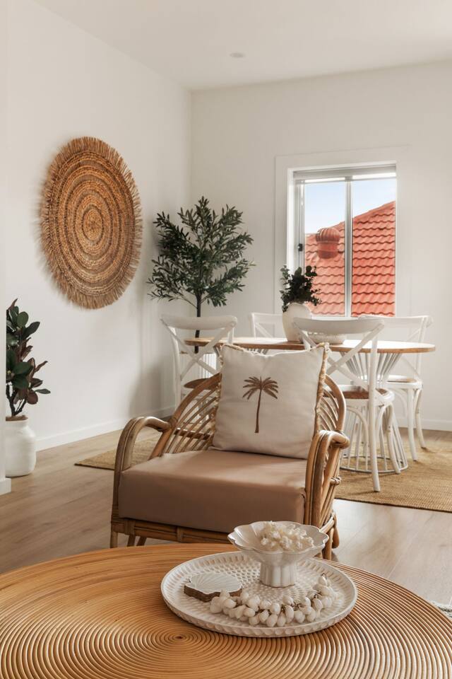 This beautifully renovated apartment has been thoughtfully designed and professionally styled to reflect a relaxed coastal lifestyle, just moments from Bronte Beach. Step outside and enjoy direct access via a private gated pathway leading straight down to Bronte Beach. Perfect for morning swims, coastal walks, and café visits. The light-filled living and dining area offers a comfortable space to unwind, with a calm, beach-inspired aesthetic throughout. The fully equipped kitchen includes a fridge, electric cooktop, oven and Smeg coffee machine, making it easy to prepare meals or enjoy a slow morning coffee before heading out. The main bedroom features a comfortable queen bed and wardrobe, while the second bedroom includes a double bed. Please note this second bedroom is smaller in size and accessed via the main bedroom, with no separate entrance. The apartment accommodates up to 4 guests, however the layout is best suited to 2 adults, or 2 adults with children, making it ideal for families, couples or close friends. Booking requests of more than 2 adults will not be accepted.